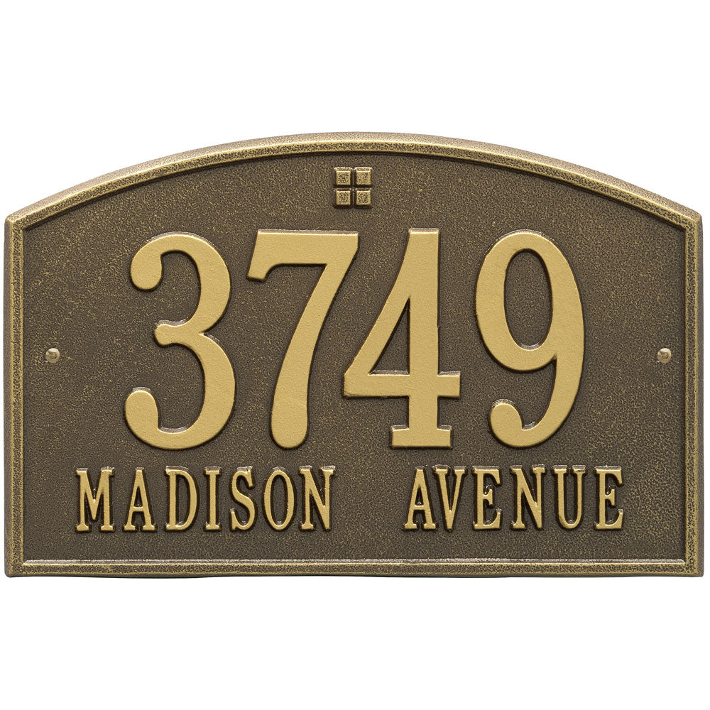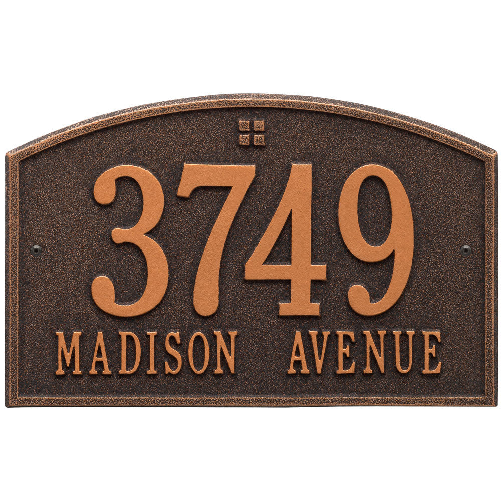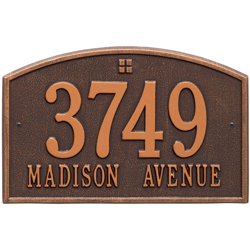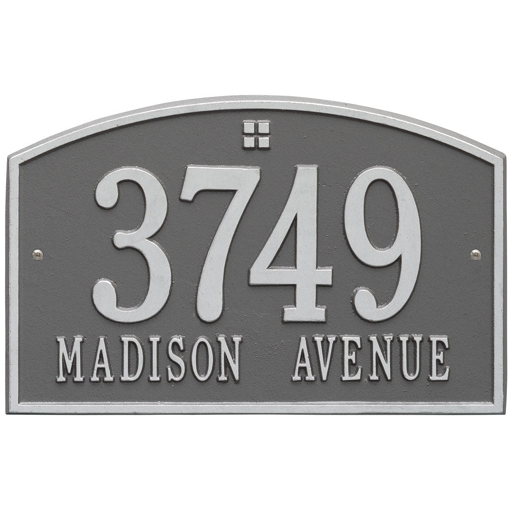 A Cape Charles Wall Mount Personalized Address Marker gives your home or business an stunning finishing touch. This address plaque is crafted in the USA with recycled aluminum materials. finished with durable weather tested paints. and features a two-line design that can hold up to a five character address. and 17 character street. family or business name.