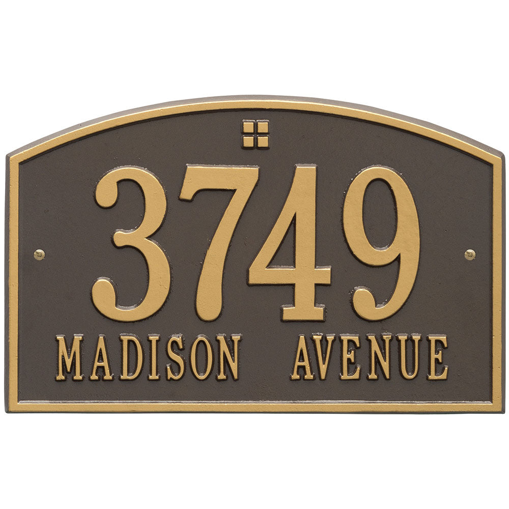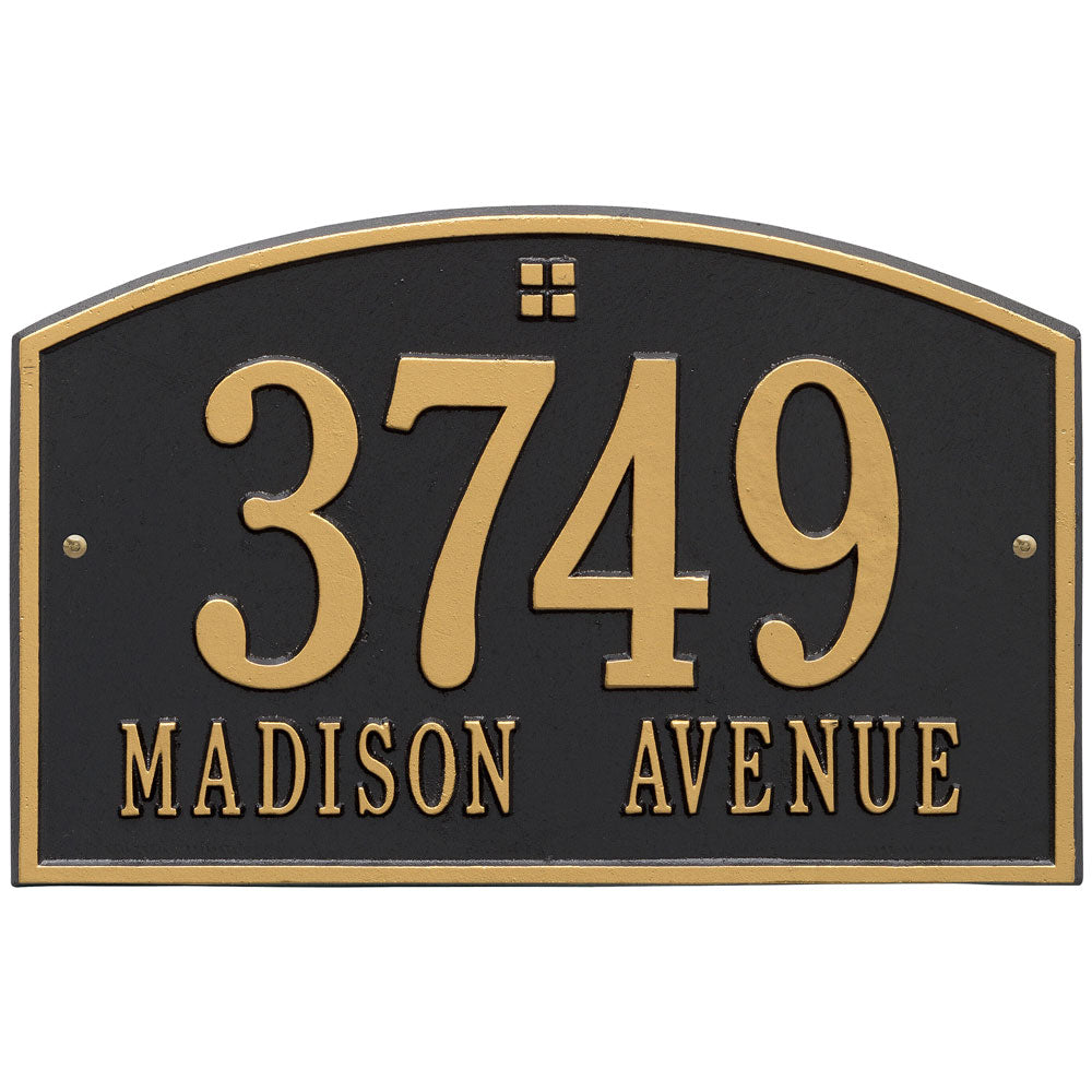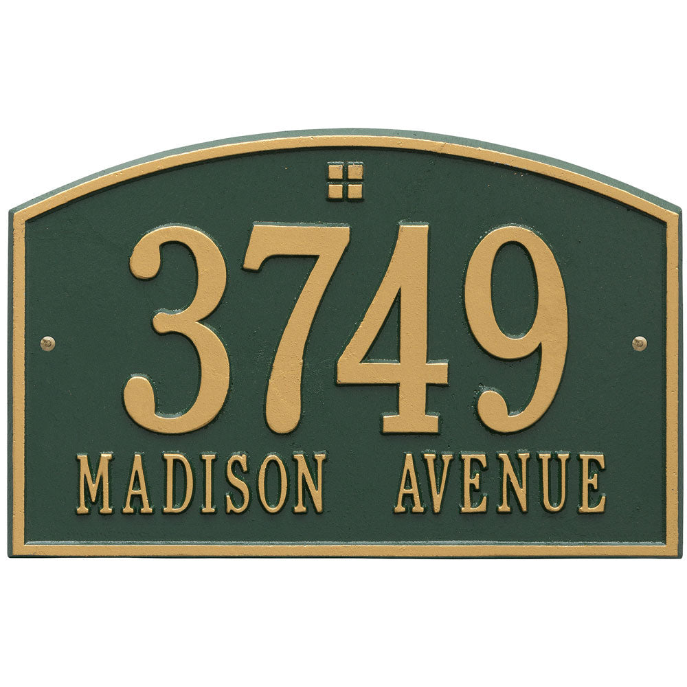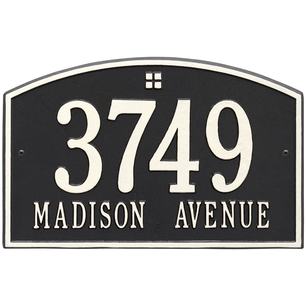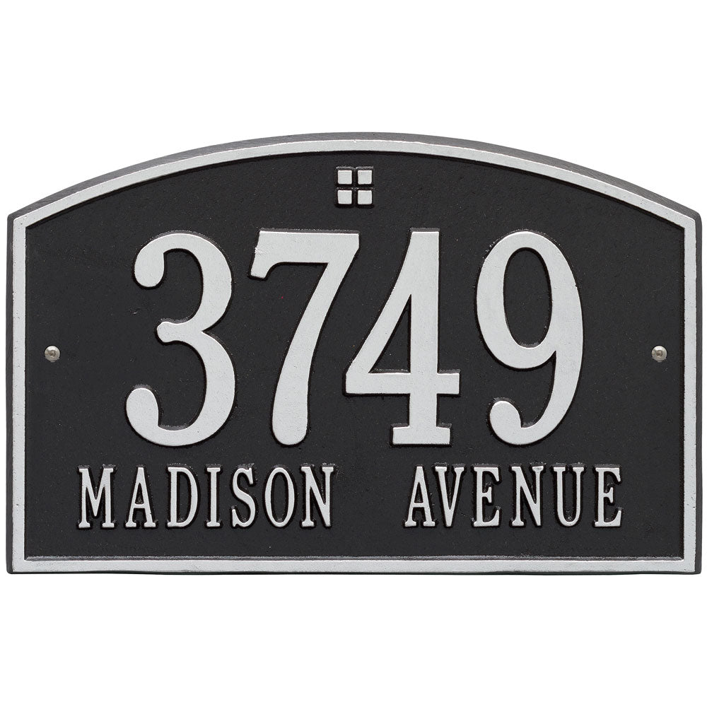 A Cape Charles Wall Mount Personalized Address Marker gives your home or business an stunning finishing touch. This address plaque is crafted in the USA with recycled aluminum materials. finished with durable weather tested paints. and features a two-line design that can hold up to a five character address. and 17 character street. family or business name.