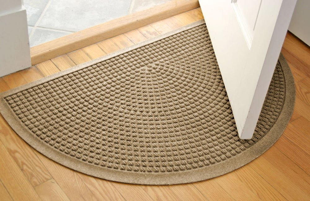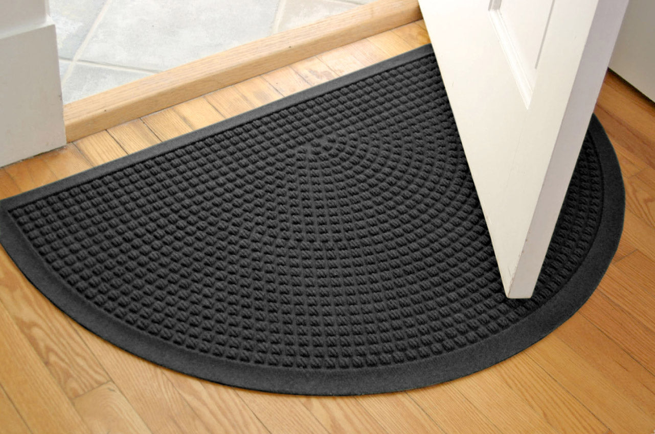 The semi circle mat is made out of 25 percent recycled materials and is guaranteed to be be slip resistant. This environmentally conscious and extremely safe rug is the perfect entryway solution for any home.