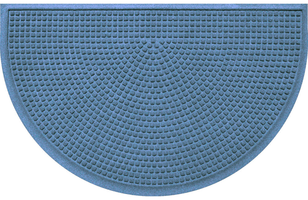 Available in a choice of 19 different colors. there is sure to be a vibrant Semi Circle Mat in Squares design to match any home. This polypropylene mat is a commercial grade half circle entryway rug perfect for use indoor or out. The durable construction stands up to all the elements - this mat is resistant to mold. mildew. rot. sun bleaching and even static. The thick rubber is non-slip and even features a Water Dam to help keep moisture and dirt off floors. Clean up is easy too. just rinse with water or spray with a garden hose.